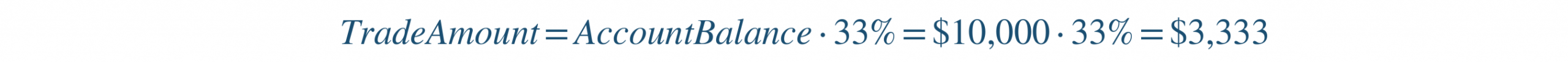 Again, an example is used to demonstrade the calculations. Let’s assume an account balance of $10,000 of which 33% are used for the trade. A winning trade with a gain of 15 % is assumed. The %-to-Stop-Loss value is 3 %. The trade was opened for 50 days.