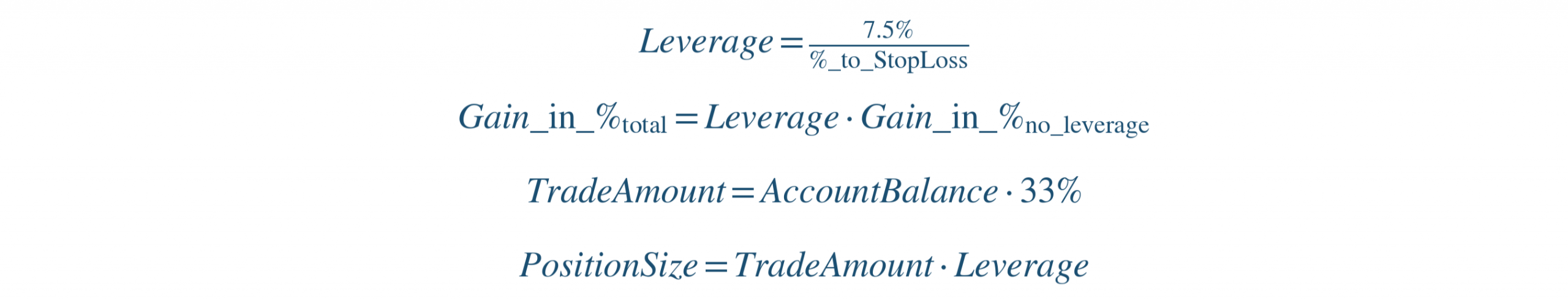 Leverage, Total Gain in %, Amount used for Trade and Position Size: