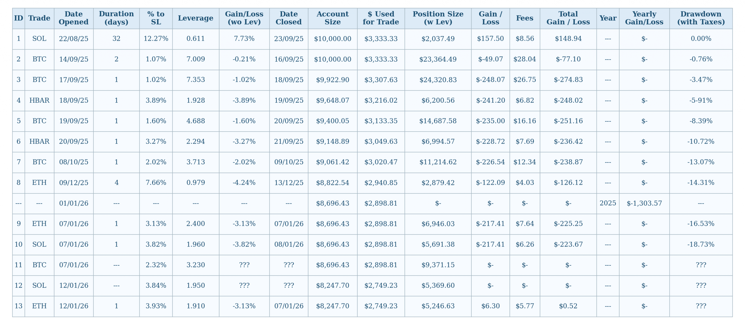 - Trade 12: 12/01/2026 – SOL Futures Trade